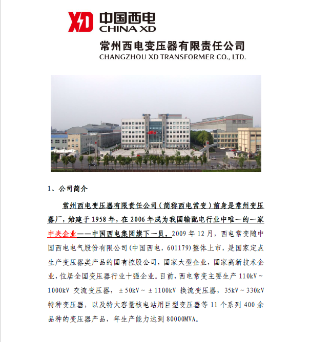【就业信息】中国西电集团-常州西电变压器有限责任公司-介绍.pdf
